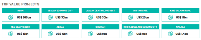 目前,沙特擁有超過3,000個活躍的建設項目,總價值高達1.3萬億美元,占據了海灣合作委員會項目市場的54%。